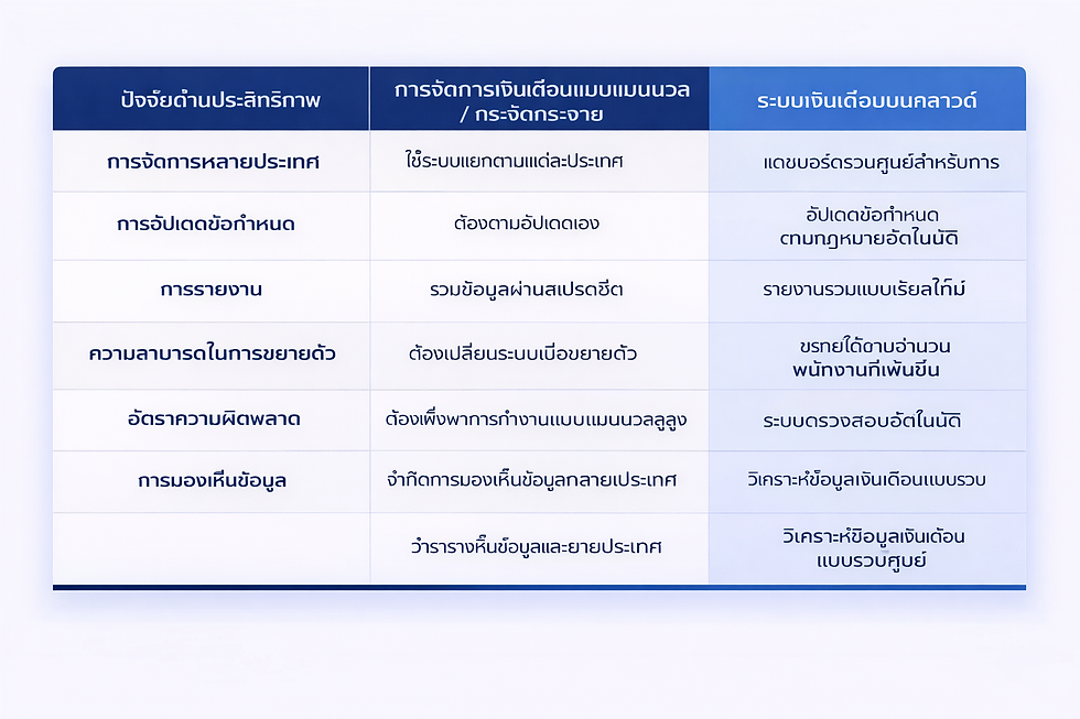 ประสิทธิภาพงานเงินเดือน: แนวทางแบบดั้งเดิม vs ระบบคลาวด์